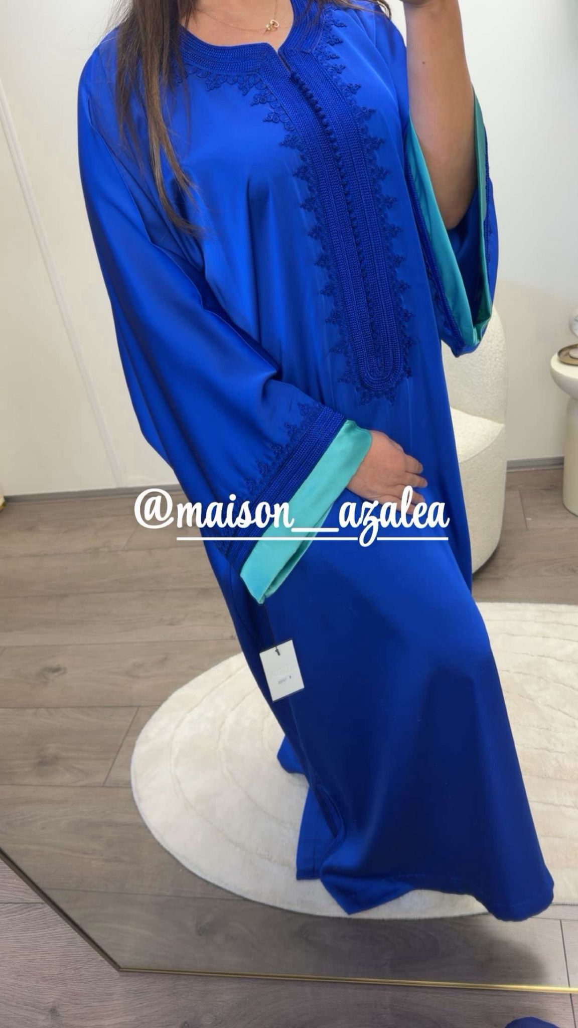 Een verfijnde gandoura in een diepe donker blauwe kleur. Tijdloos, vrouwelijk en moeiteloos chic.